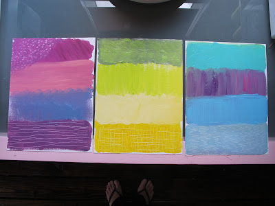 Using a few sheets from my canvas pad, I painted some solid and variegated colors using acrylic paints.